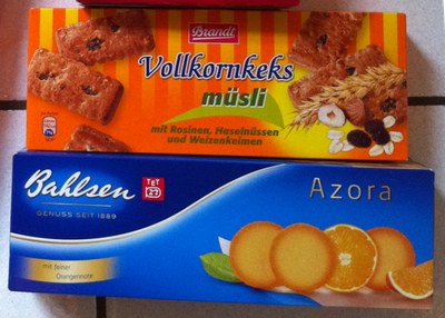 Bei meiner zweiten Wahl bin ich noch skeptisch: “Azora” von Bahlsen. Ein Klassiker, den es seit 1889 gibt. Es wird mit “anspruchsvollem Genuss” geworben, aber vielleicht ist es mir auf Dauer auch zu süß. Mal sehen.