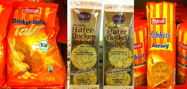 Ich habe mir für den Anfang gleich zwei Plätzchen-Sorten gegönnt: “Vollkornkeks Müsli” von Brandt. Die Packung hat zwar kein Brandt-Zwieback-Grinsegesicht vorne drauf, dafür ist seitlich der schematische Aufbau eines Weizenkorns skizziert. Knabbern und lernen gleichzeitig!