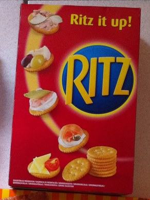 Ich habe mich für Versuchszwecke für “Ritz” aus dem Hause “Kraft” entschieden. Diese Cracker-Marke gibt es immerhin seit 1934. Die Box ist wiederverschließ-bar und feuert mit dem Slogan “Ritz it up!” geradezu zum Verzehr an.